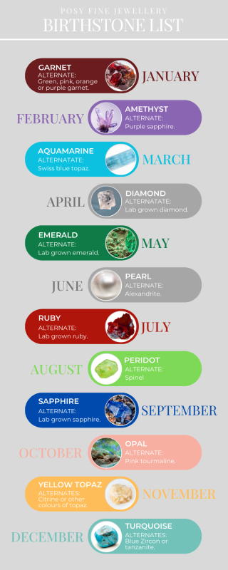 If you just looking for quick rundown of which stone corresponds to which month we’ve created this handy graphic below.