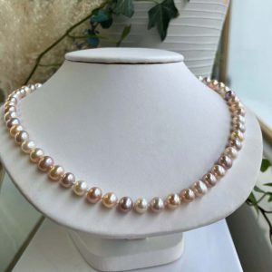 The pearl necklace is seeing a bit of a resurgence these days. There was a period of time in recent years when pearl necklaces were seen as passé or something a grandmother would wear. But now we’re seeing people playing with styling, layering pearl necklaces with other necklaces, contrasting a pearl necklace with a dressed down look or choosing different colours of pearls.