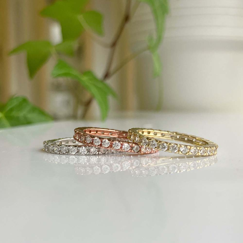 Bouncing from the stacking ring trends, some brides are opting for a wedding ring stack. Another one of the bridal trends for 2024 is creating multiple wedding bands so that you can stack them all together. This is especially popular for people who aren’t planning on wearing their engagement ring everyday. Instead, they are planning to have a ring stack of multiple wedding bands, some with diamonds, some plain and some with patterns or engravings.