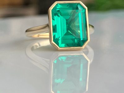One note to keep in mind if you are interested in a large centre stone is that it will need to sit higher from your finger. The larger the stone, the deeper it is and therefore the higher it sits off of your finger. When a gem sits higher off of your finger you’ll notice that it “gets in the way” a bit more such as when you put your hand in your pocket or when putting on gloves. If you are looking for something very practical a larger gemstone might not be the right choice.