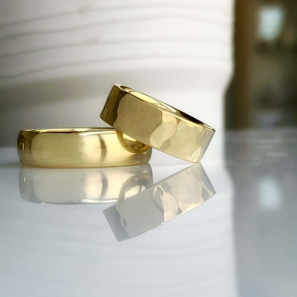 Is the dainty trend finally coming to an end? Over the past decade or so there has been a definite preference for slight, minimalist bands. Engagement rings with super thin bands and the accompanying dainty wedding ring have been very popular. If this trend is indeed coming to an end, as goldsmiths, we couldn’t be happier. Very thin and dainty bands can be beautiful but they are rarely durable. And for a ring you wear everyday, durability is important.